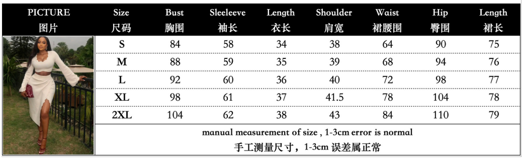 Copy| Product Name | EVE Flare Sleeve Solid Color Split Skirt 2 Piece Set GANY-LB1444 |