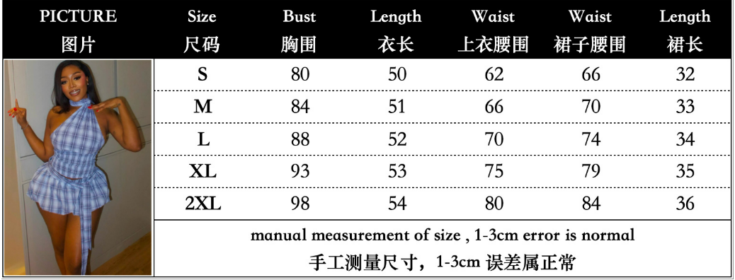 Copy| Product Name | EVE Off Shoulder Halterneck Plaid Skirt Two Piece Set GANY-LB1899 |