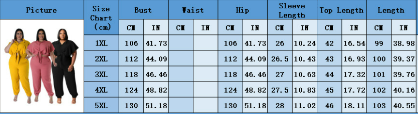 Copy| Product Name | EVE Plus Size Solid Tie Up Casual Two Piece Pants Set NNWF-7984 |